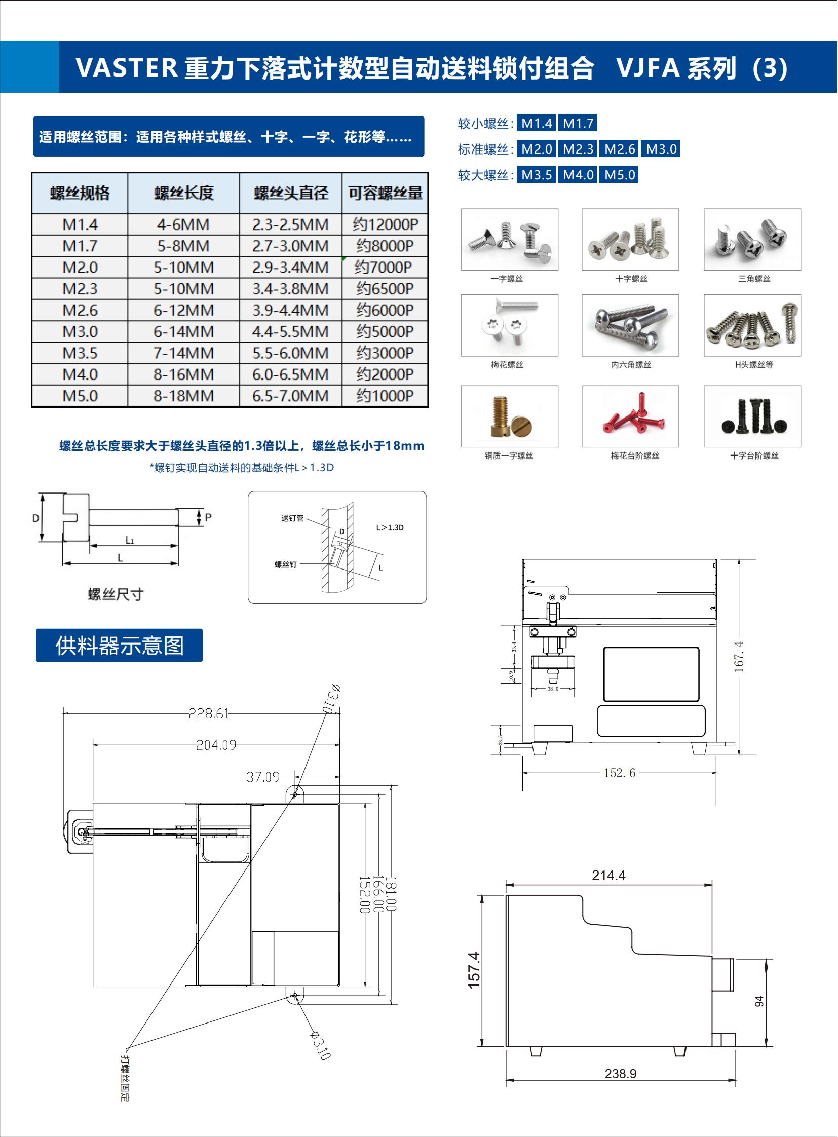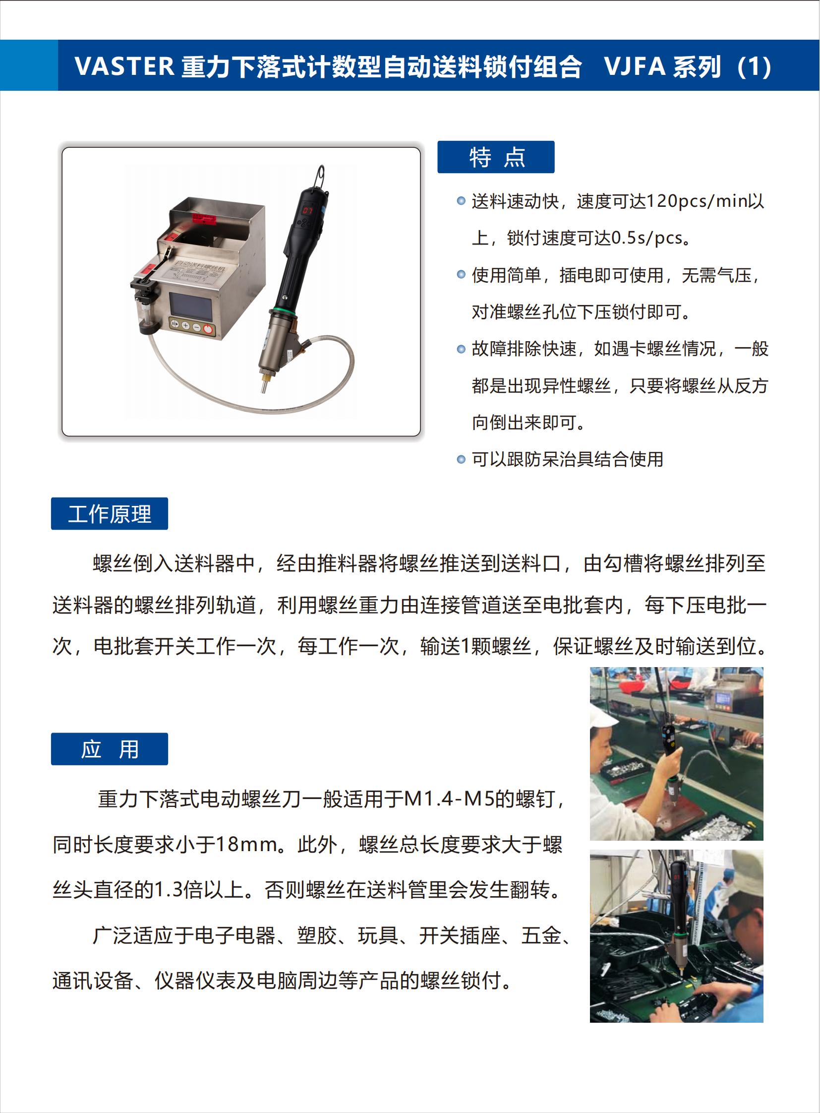 Vaster 重力下落式计数型自动送料锁付组合 VJFA 系列