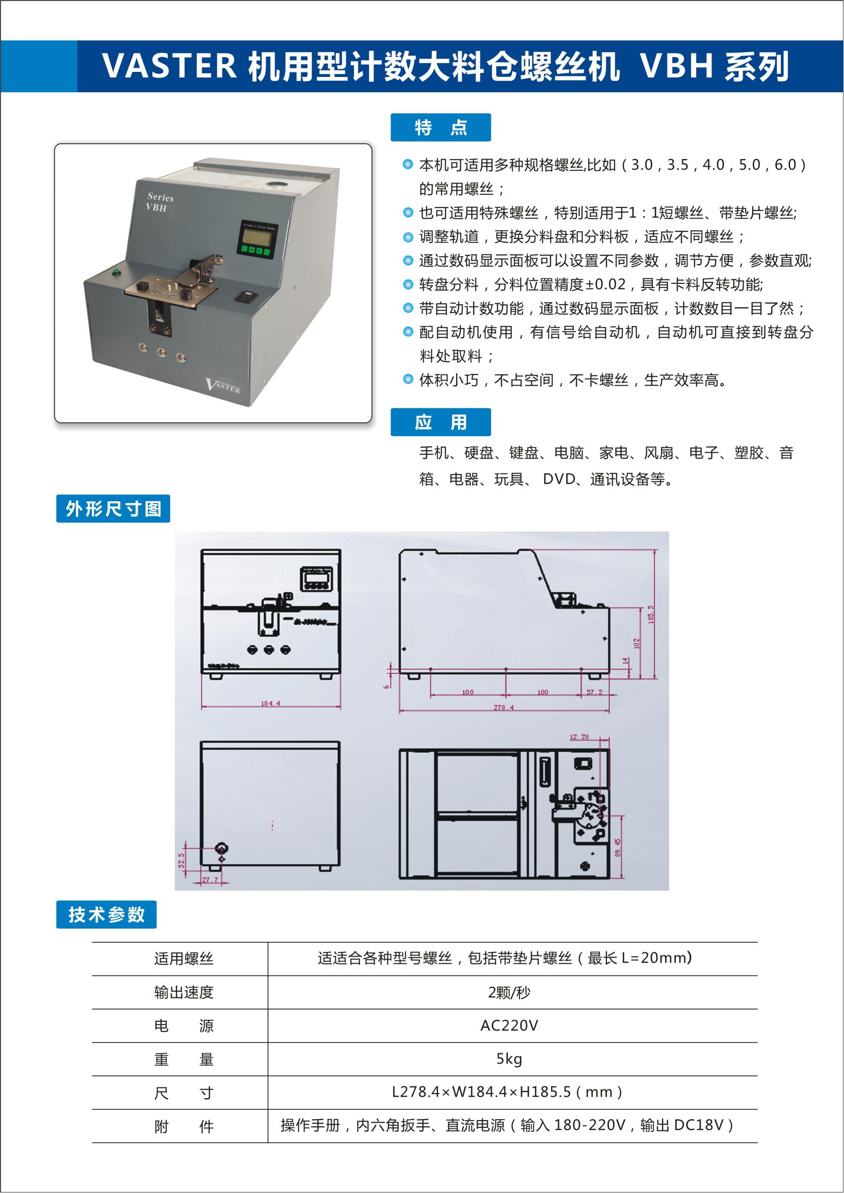 Vaster 机用型计数大料仓螺丝机 VBH系列