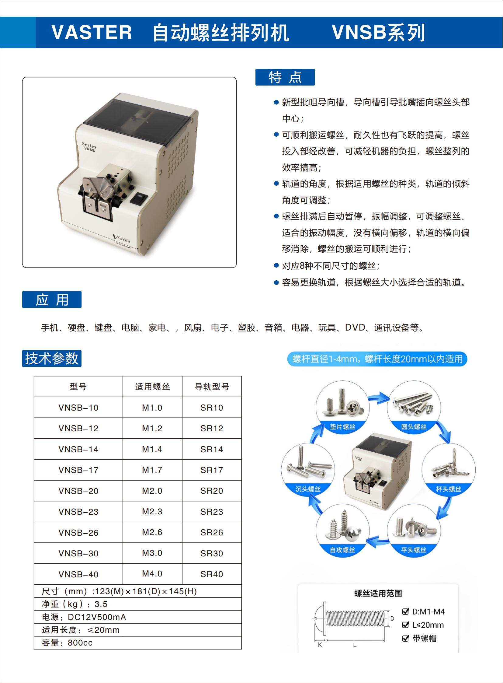 Vaster 智能型转盘式自动螺丝排列机 VNJ intelligent系列(手取型)
