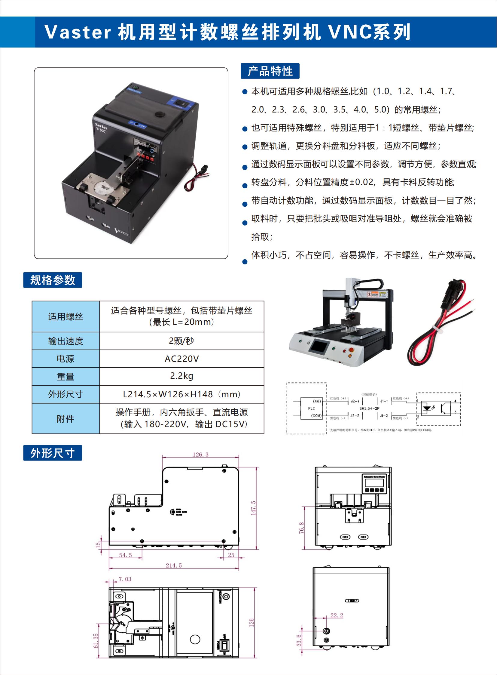 Vaster 机用型计数螺丝排列机 VNC系列