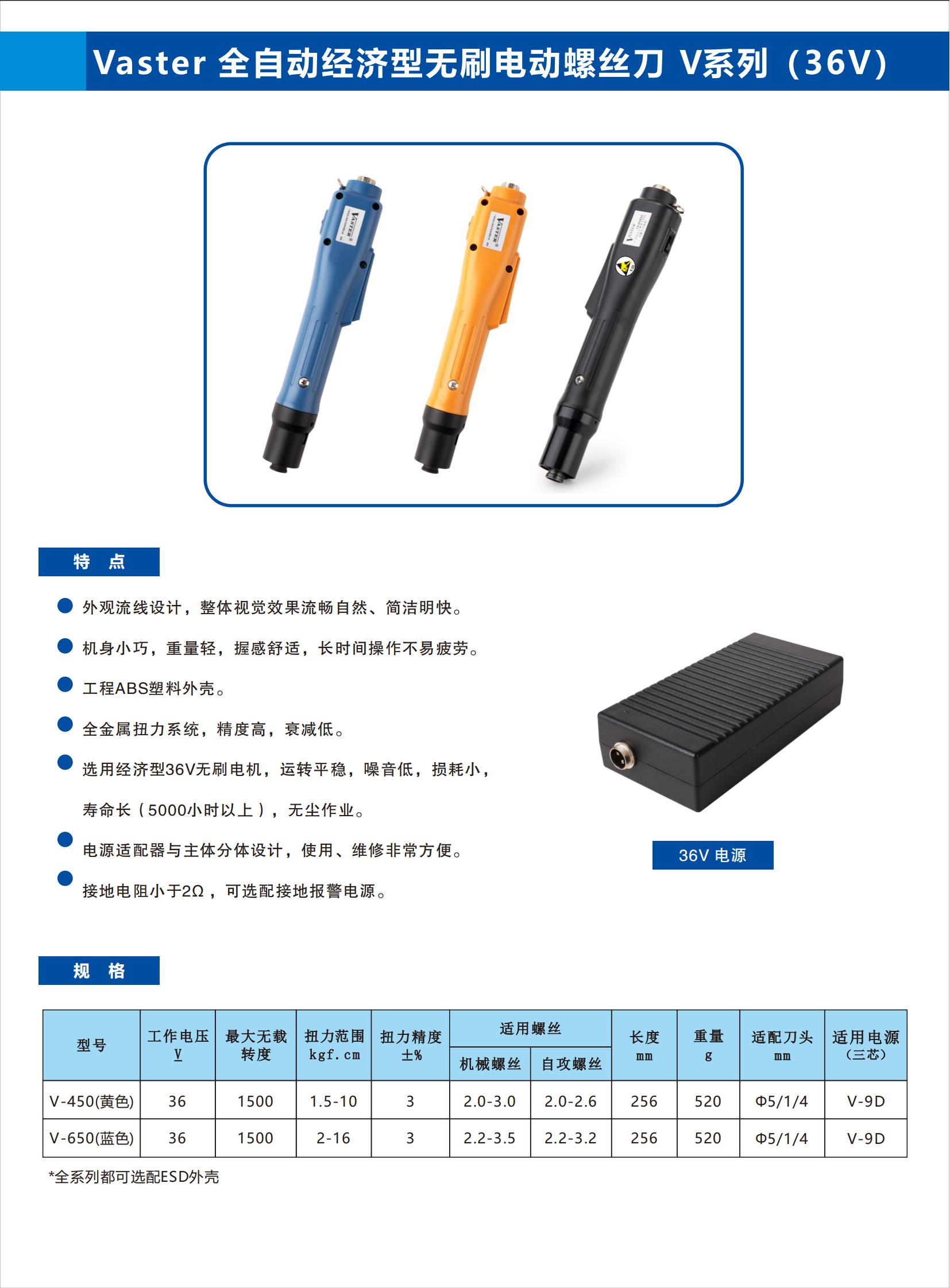 Vaster 全自动经济型无刷电动螺丝刀 V系列