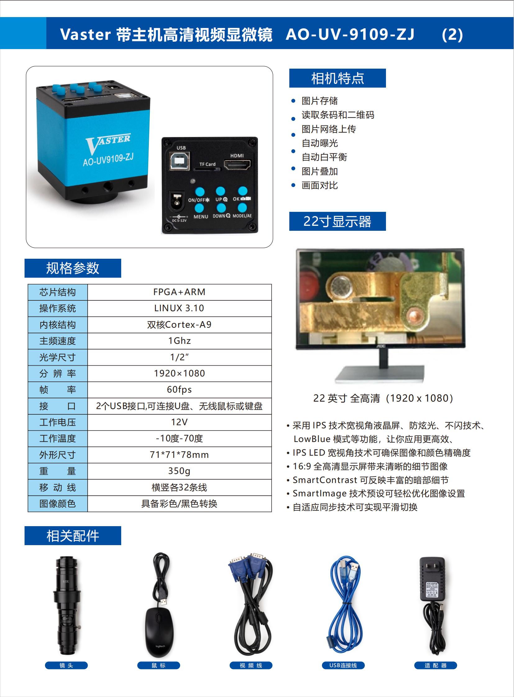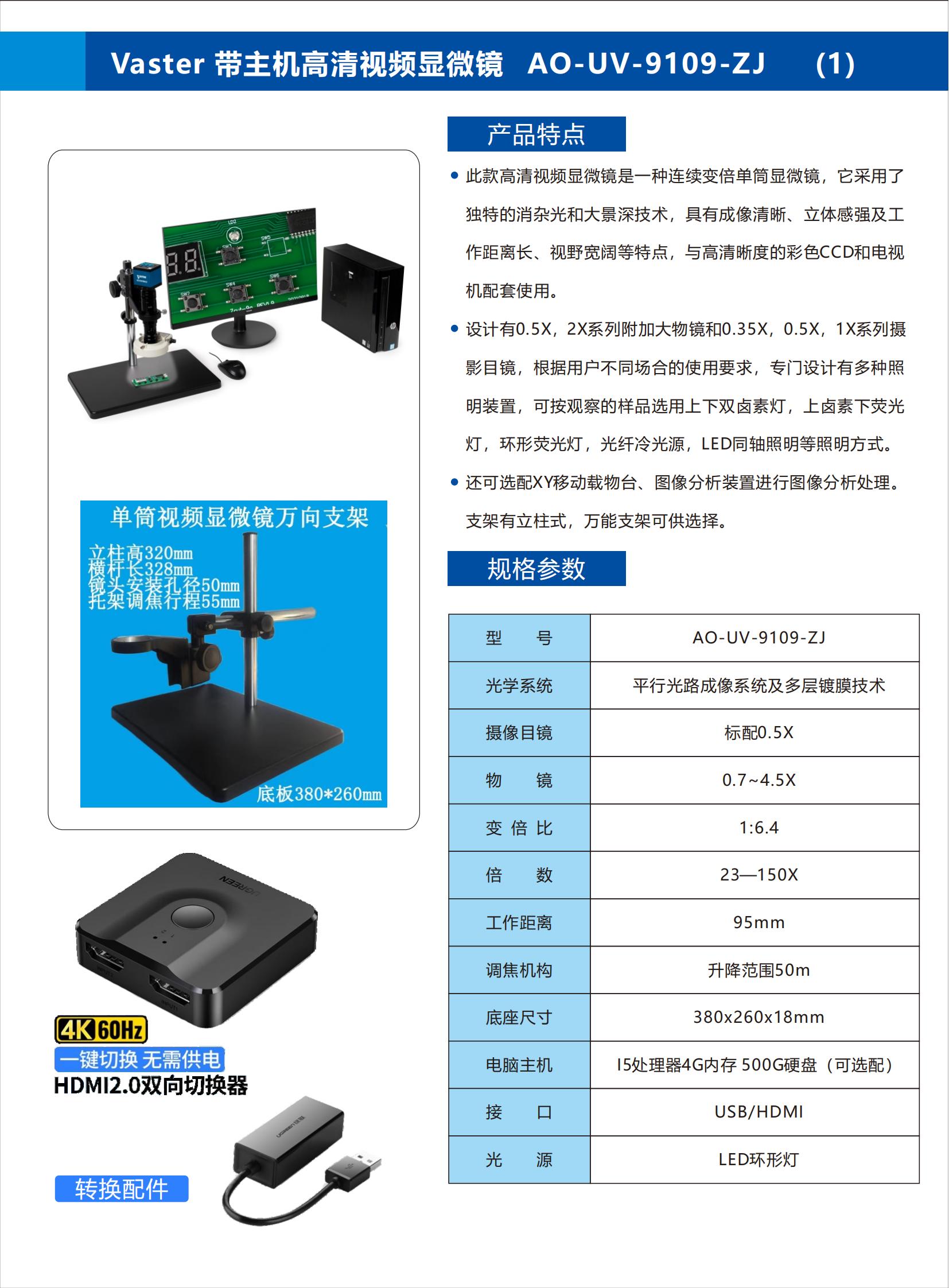 Vaster 带主机高清视频显微镜 AO-UV-9109-ZJ