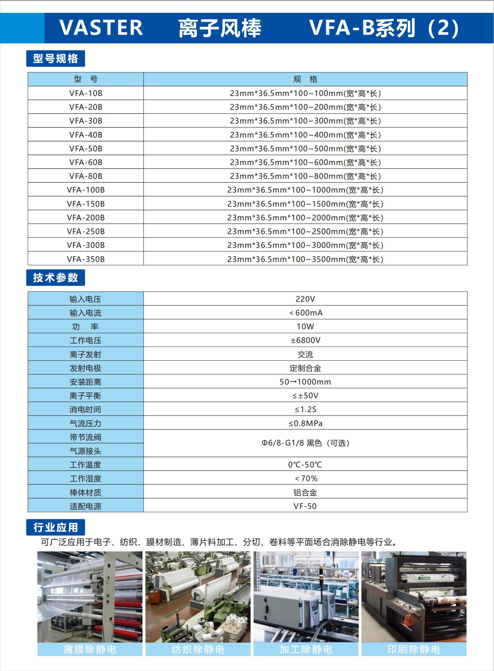 Vaster 流水线电箱保护型离子风棒 VFD-A系列