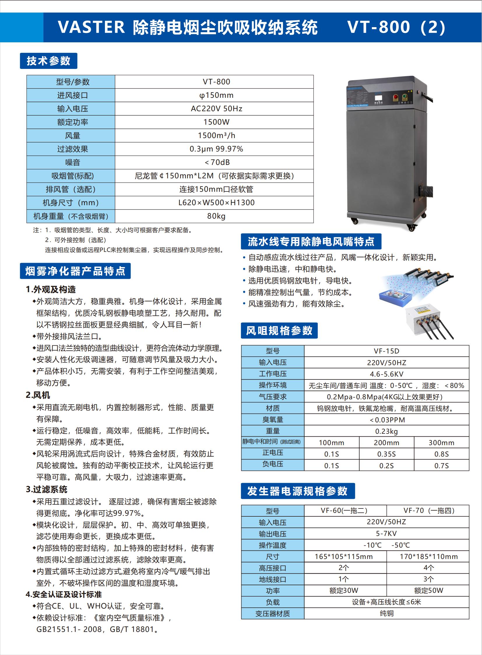 Vaster 除静电烟尘吹吸收纳系统 VT-800
